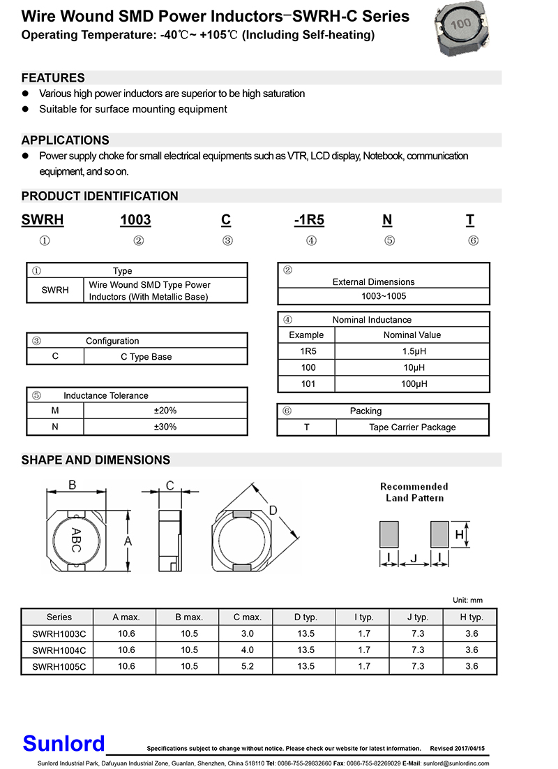 • SWRH-C貼片功率電感